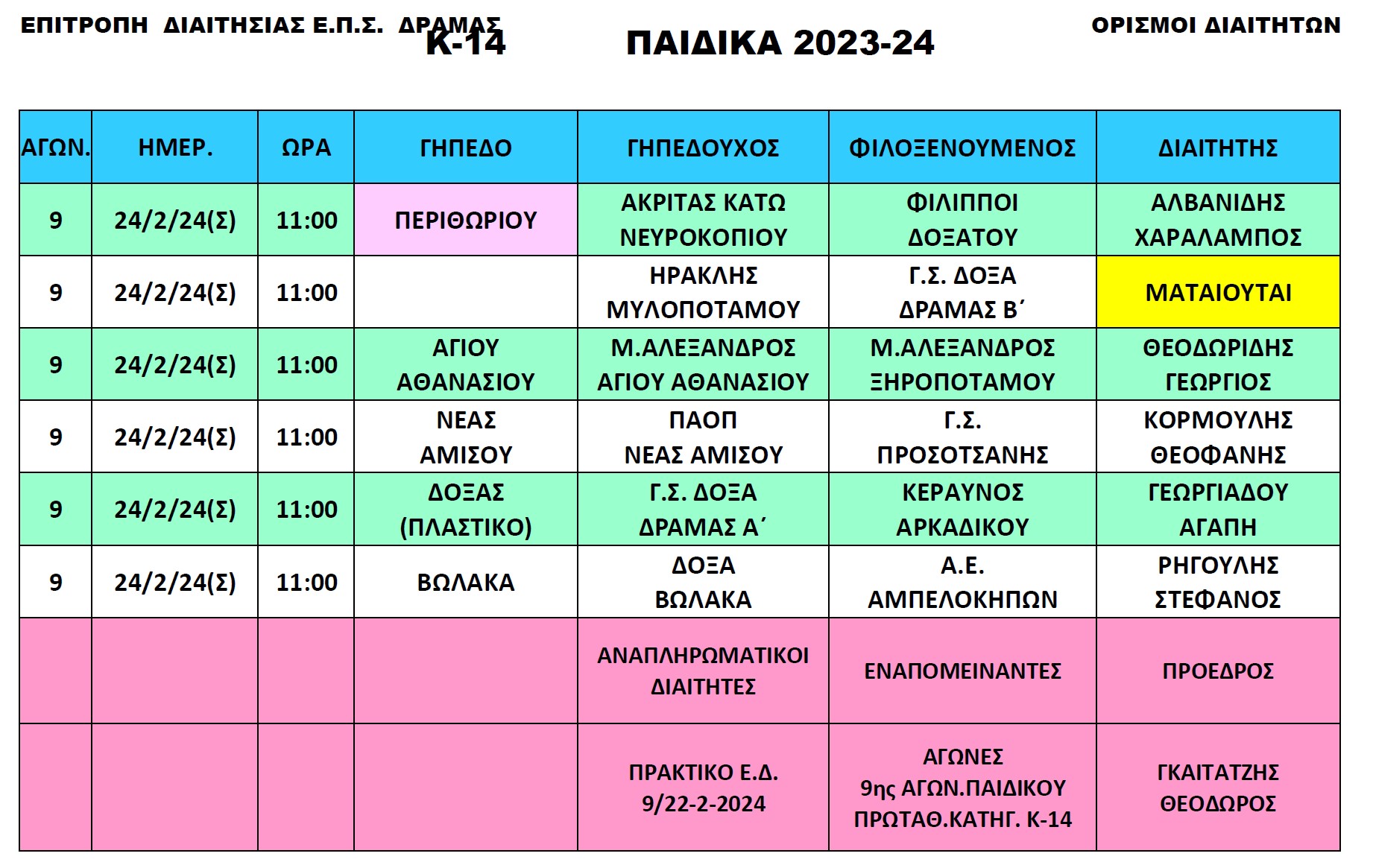 Οι διαιτητές των αγώνων 24-25/2/2024
